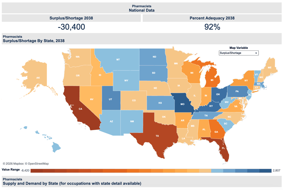 While there are additional pharmacy programs providing rural-focused training, perhaps a comprehensive answer starts with reviewing federal workforce projections for the year 2038 that indicate the nation's pharmacist supply will be 92% adequate.