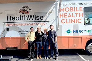 Rush pointed out that the mobile unit provides direct comprehensive services delivered by ONU's student pharmacists and their supervising faculty. The work includes preventive health education, medication reconciliation, medication therapy management, and chronic disease state management. Health screenings are also performed, including onsite measurements of cholesterol, blood glucose, hemoglobin A1C testing, and blood pressure. Immunizations along with additional medical care — including specialty care — are also part of the HealthWise clinical workflow.